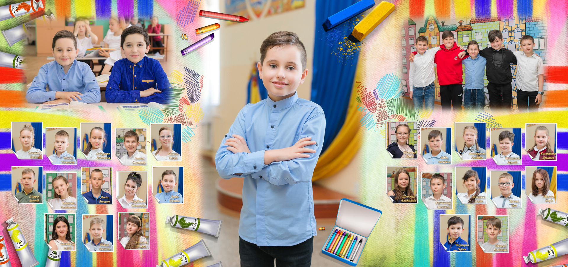 1 фотосессия. Портреты каждого ученика, групповые фотографии с друзьями и учителем. Общая фотография класса. Для каждого ребенка индивидуальный подбор фото. Актуальная стоимость на весну 2022 года — 350грн