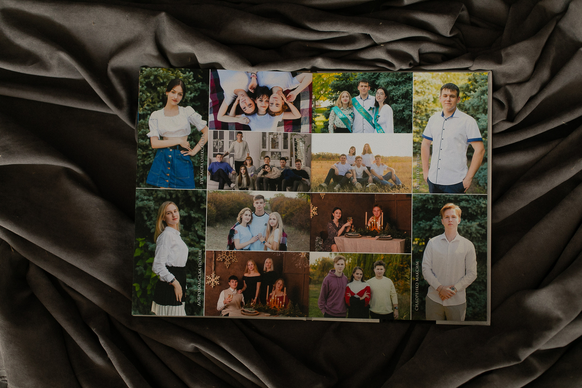 Выпускная книга. 13 разворотов. 20×30 см. 4 фотосессии. Фотографии в электронном виде на вашей флешке.